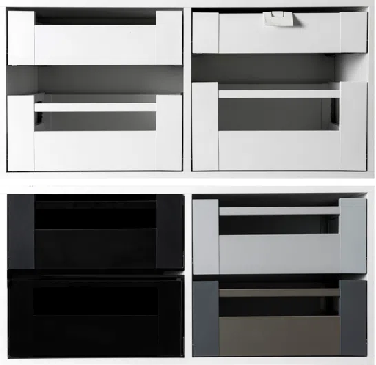 Auch bei den Schubladen legen wir größten Wert auf Design und Funktion. Daher bieten wir eine umfangreiche Palette an, mit der Sie Ihre Kunden begeistern können. Diese können wir Ihnen zum Beispiel mit passenden Besteckeinsätzen, Kunststoffböden, mit Siphon-Ausschnitt oder als Hosen- und Müllauszug anbieten.